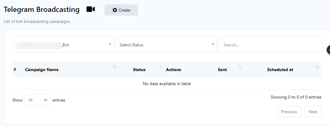 - Select a bot to send broadcast message from dropdown menu.