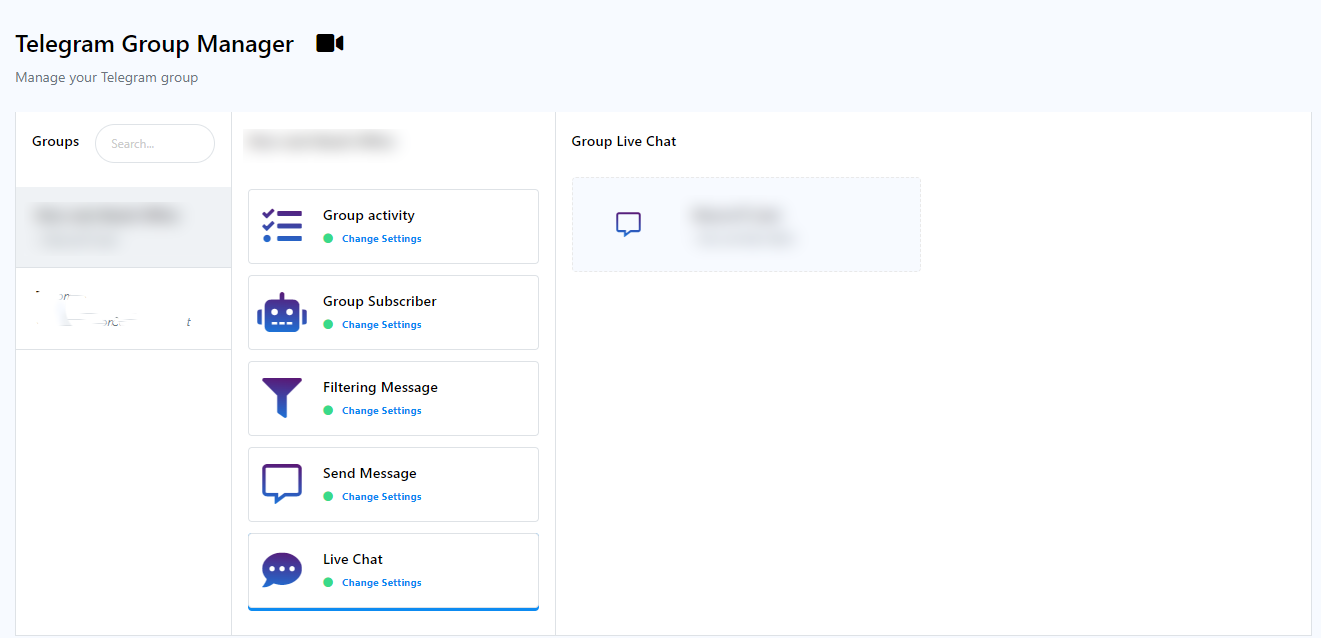 The Live Chat functionality within Group Manager offers real-time monitoring and messaging capabilities, serving a variety of purposes including: