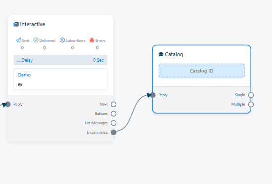 - After adding the `Catalog` element to your flow, Double-click on the catalog element. This will reveal the `Catalog ID` field, allowing you to input your WhatsApp catalog id.