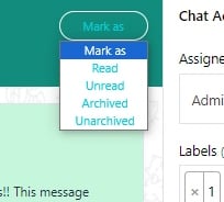 Then you have `Mark as` an option. Choose from options like `read`, `unread`, `archived`, or `unarchived`.